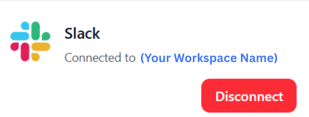 Slack integration showing "Connected to (Your Workspace Name)" status